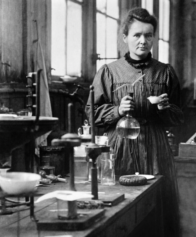 Marie Curie dans son laboratoire au début du XXème siècle.
